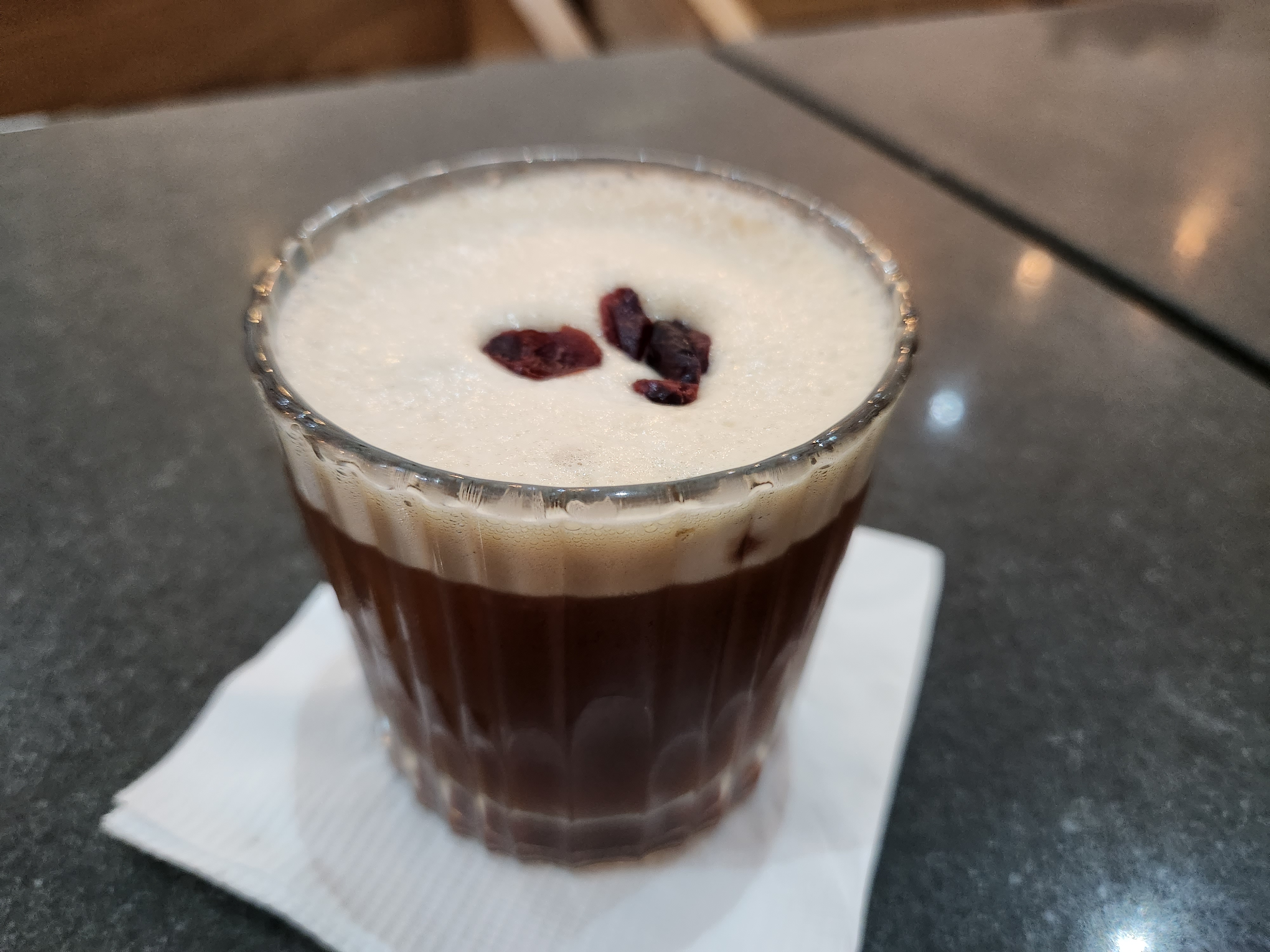 에스프레소에 이것저것 시럽을 타서 칵테일처럼 만든 건데 시원하고 달콤해서 넘 맛있었다!!