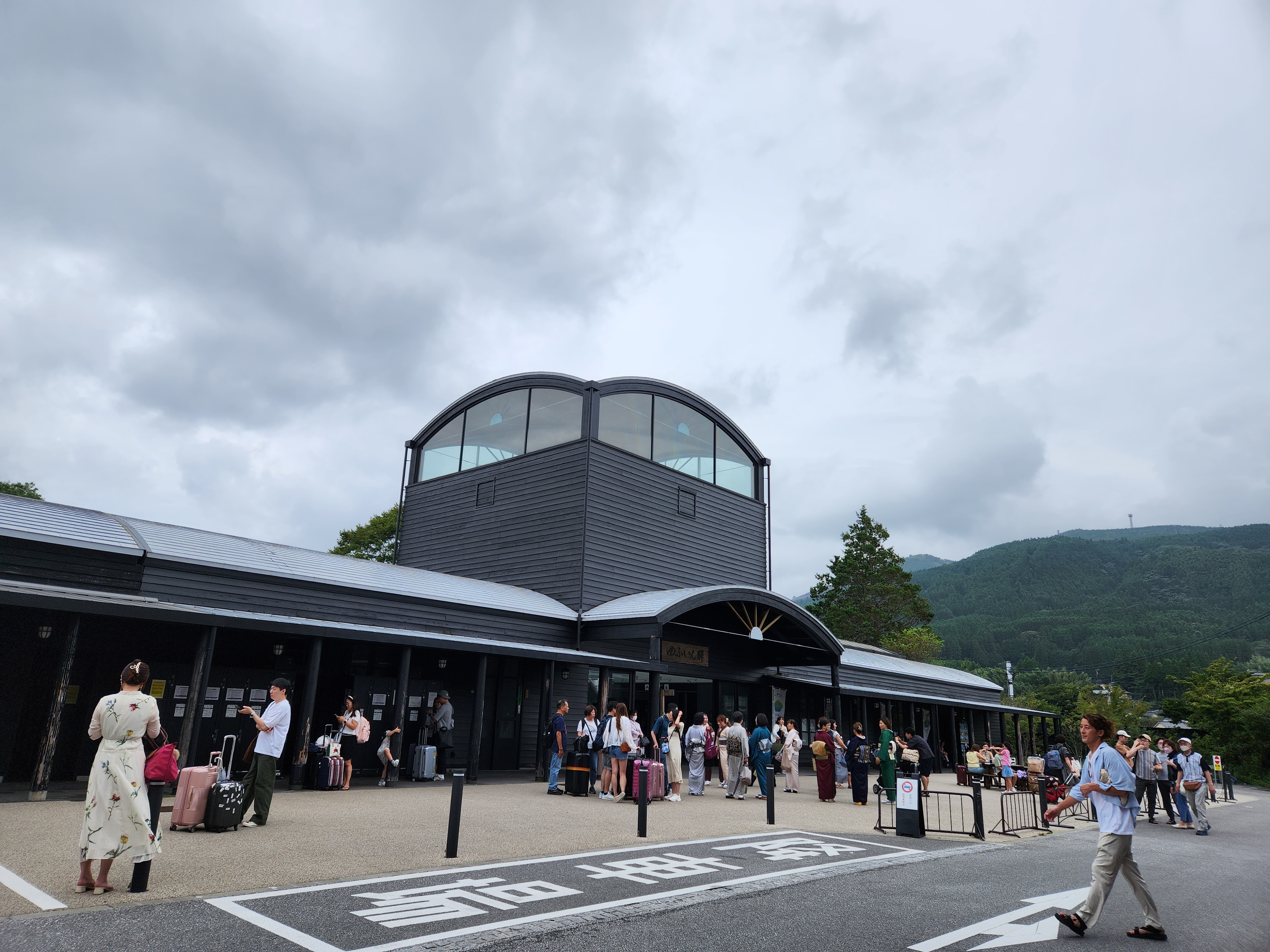 버스를 타고 가도 되는데 일본 여행하면 기차를 빼놓을 수 없어서 기차를 타고 갔다.
