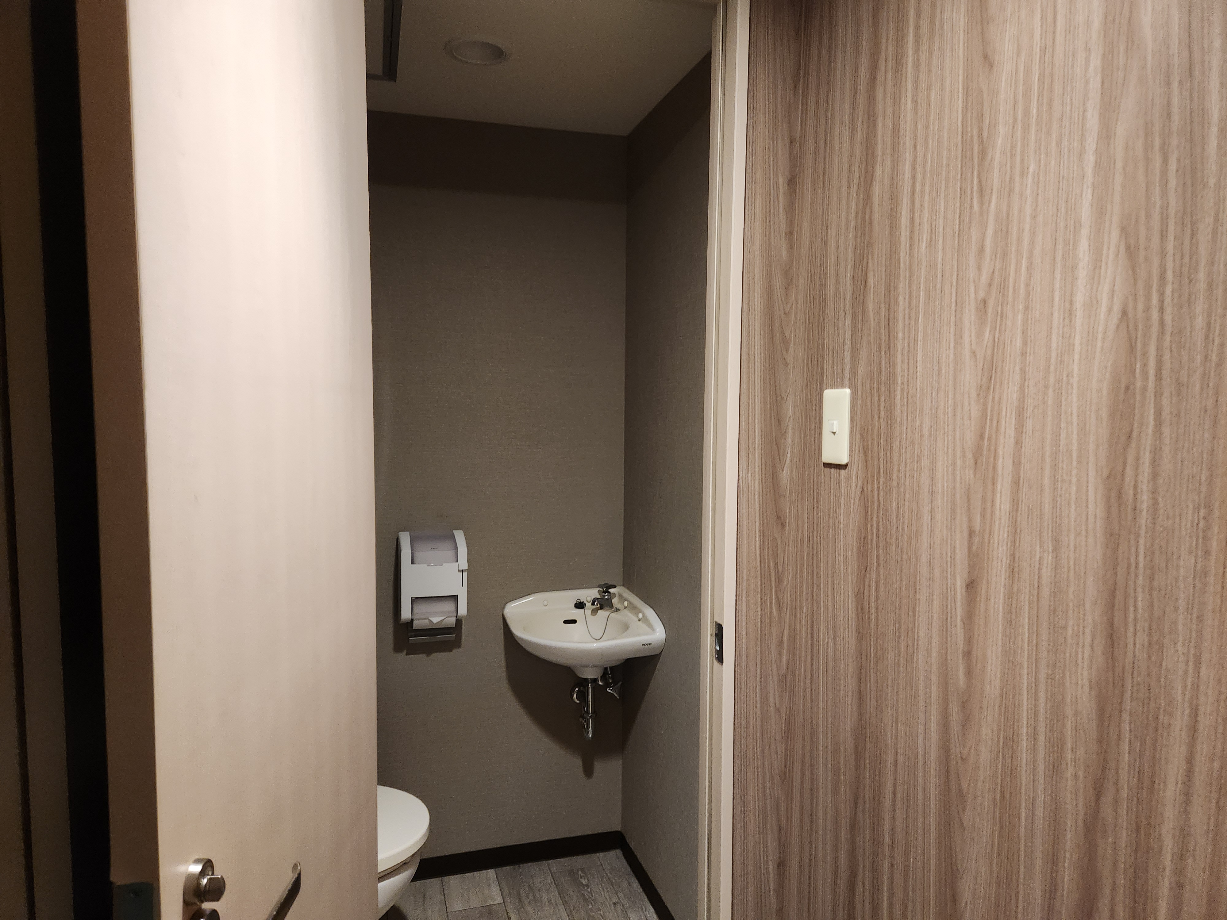 신기하게 화장실이 둘로 나눠져 있다. 한쪽 끝에는 변기랑 세면대 하나