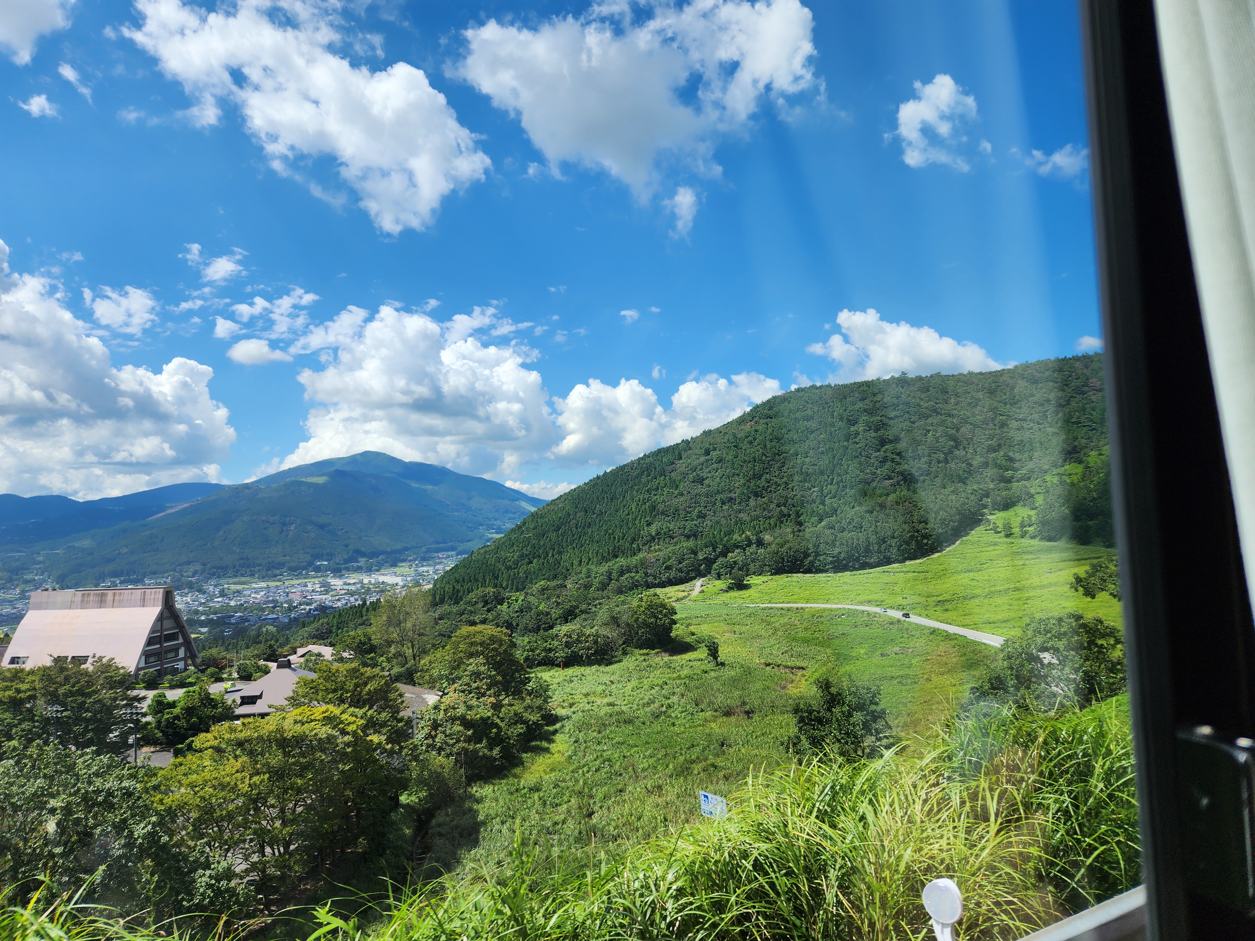구불구불한 길을 지나 유후산을 건너오는데 초원이 너무 예뻤다. 이날은 날씨도 좋아서 더 예뻐 보였음..