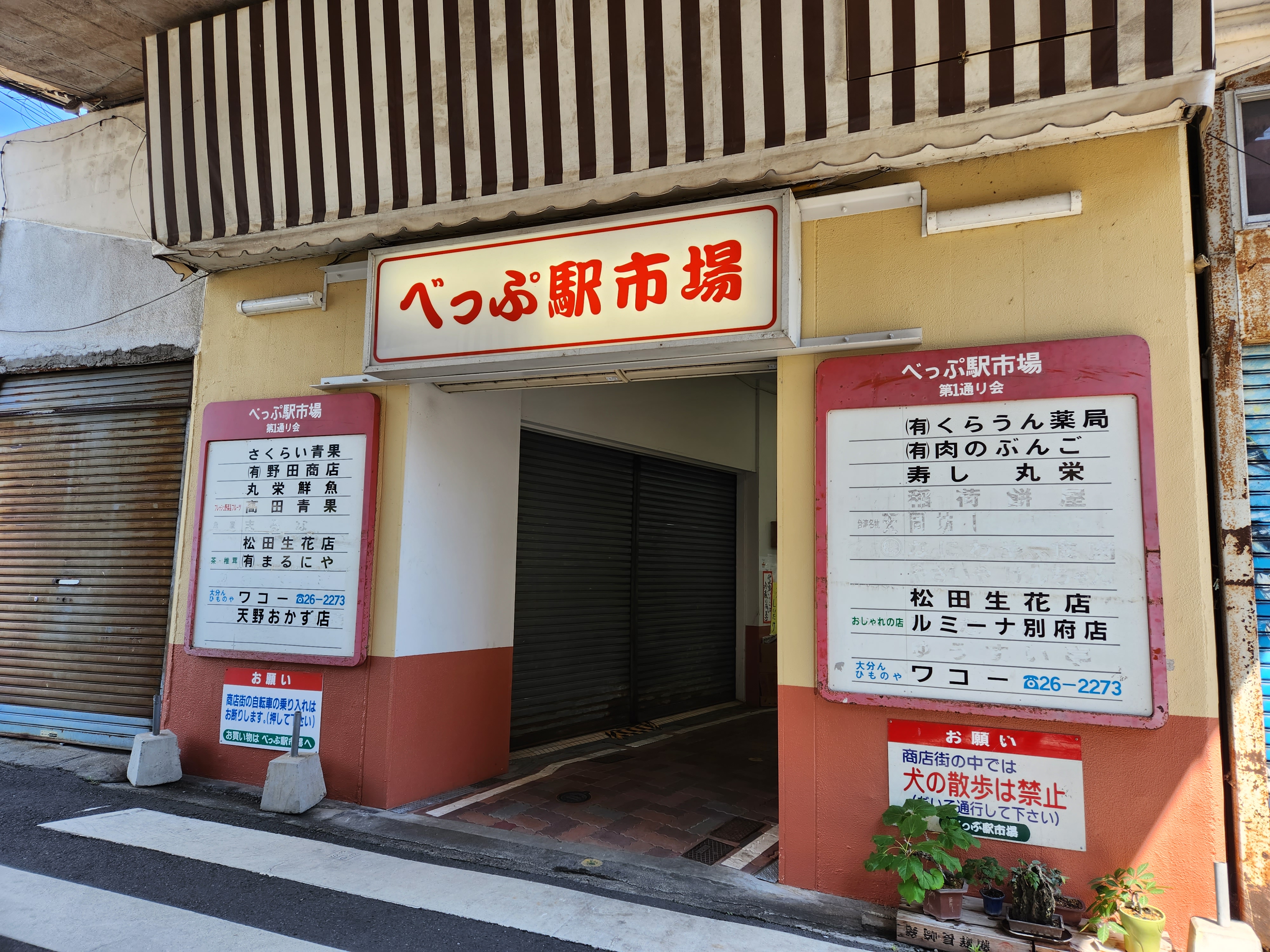 골목길로 가면 차 때문에 힘들었는데 이 시장을 통과하고 주차장에서 벳푸역 터미널에 있는 마트를 통과해서 역으로 가면 정말 가깝다. 캐리어 끌기도 편하고!
