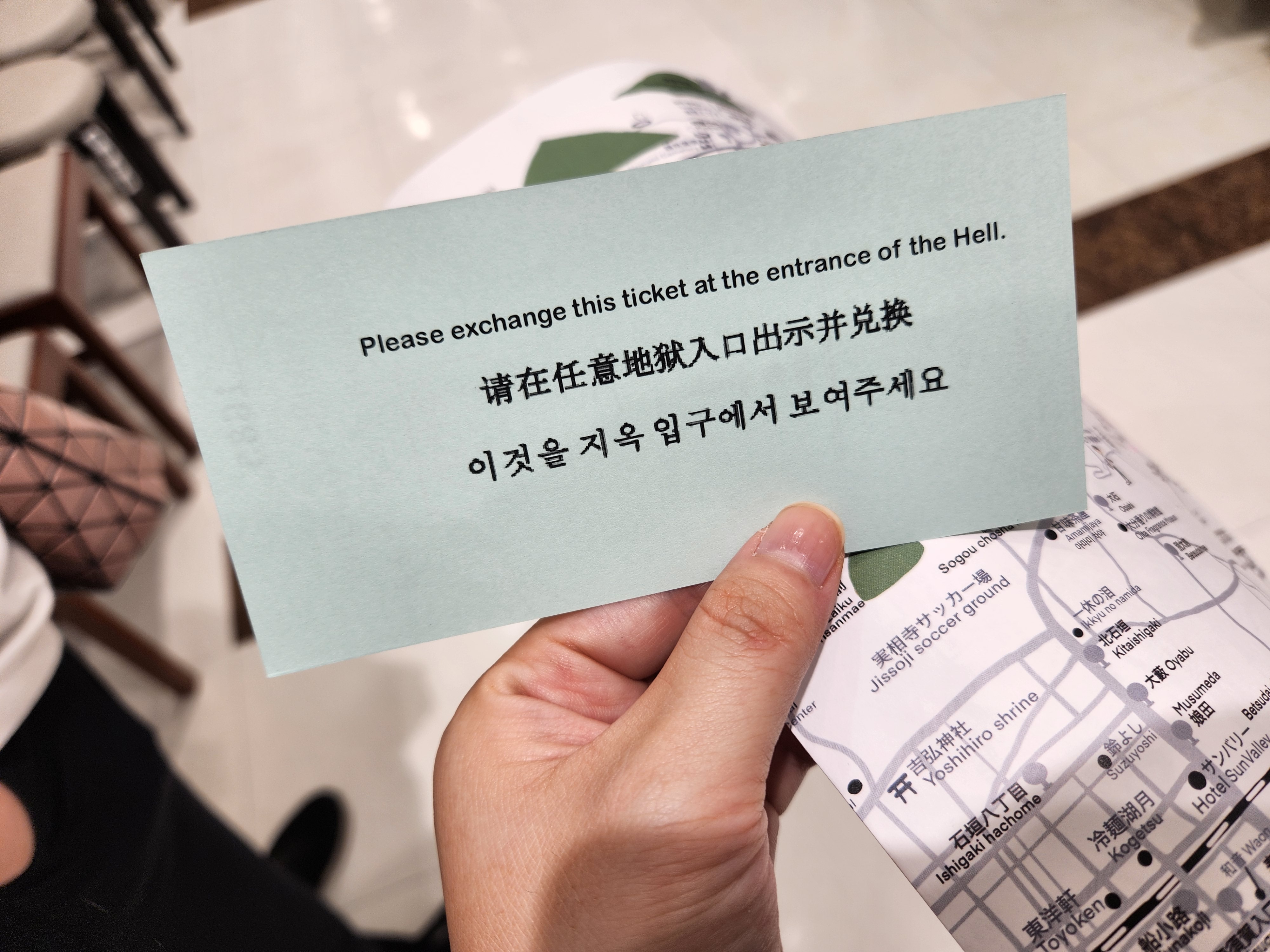 지옥 온천 티켓은 이렇게 생겼다. 이걸 지옥 온천 7 군데 중 아무데서나 보여주면 7개의 입장 티켓으로 바꿔준다.