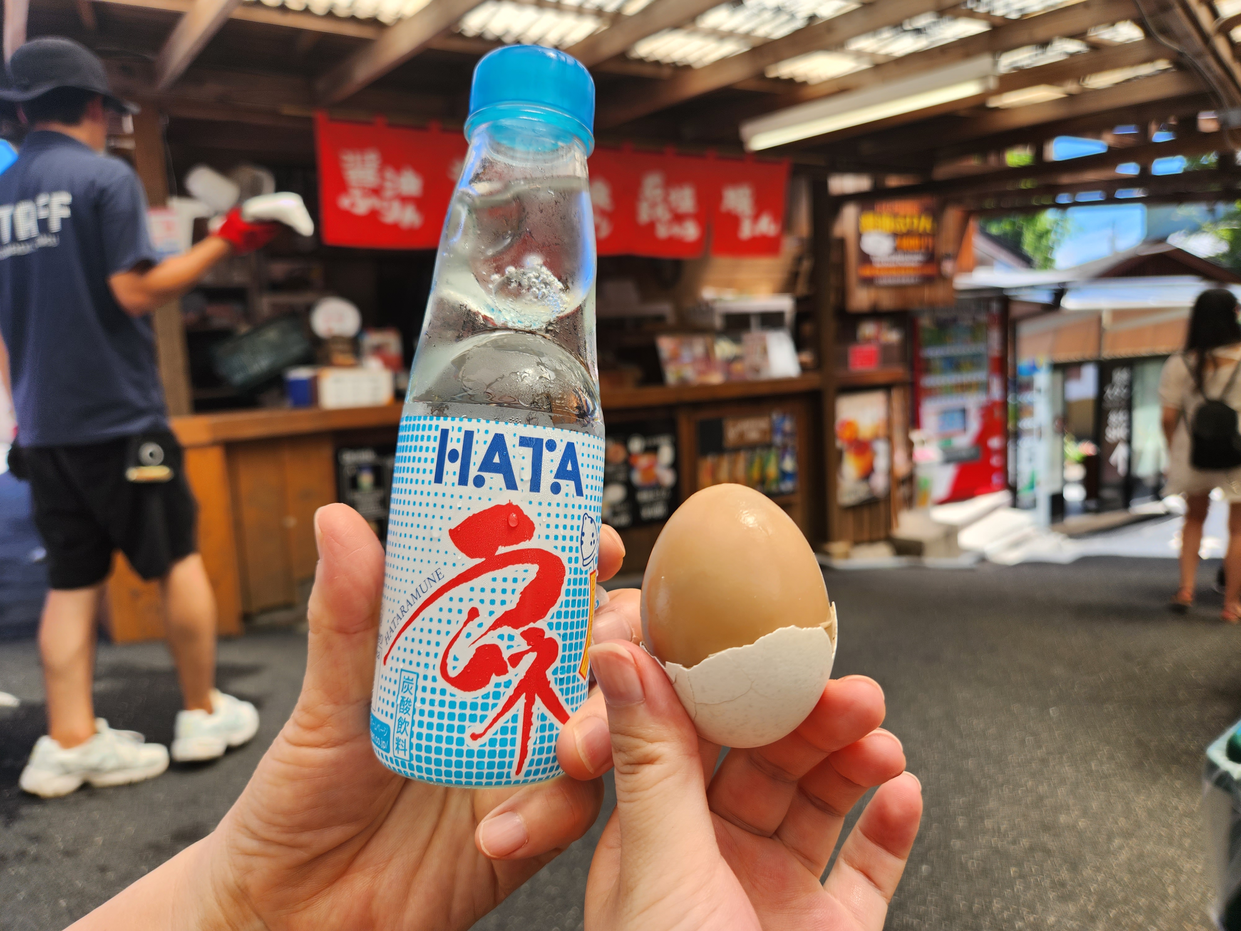 한국인 단체 관광객들은 여기서 온천 증기로 찐 계란 2개, 라무네 한 병을 받길래 나도 따라 샀다 ㅎㅎ