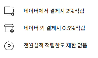 실적, 한도 없이 네이버 결제는 2% 적립, 그 외는 0.5% 적립이다. 깔끔하다 깔끔해..👌