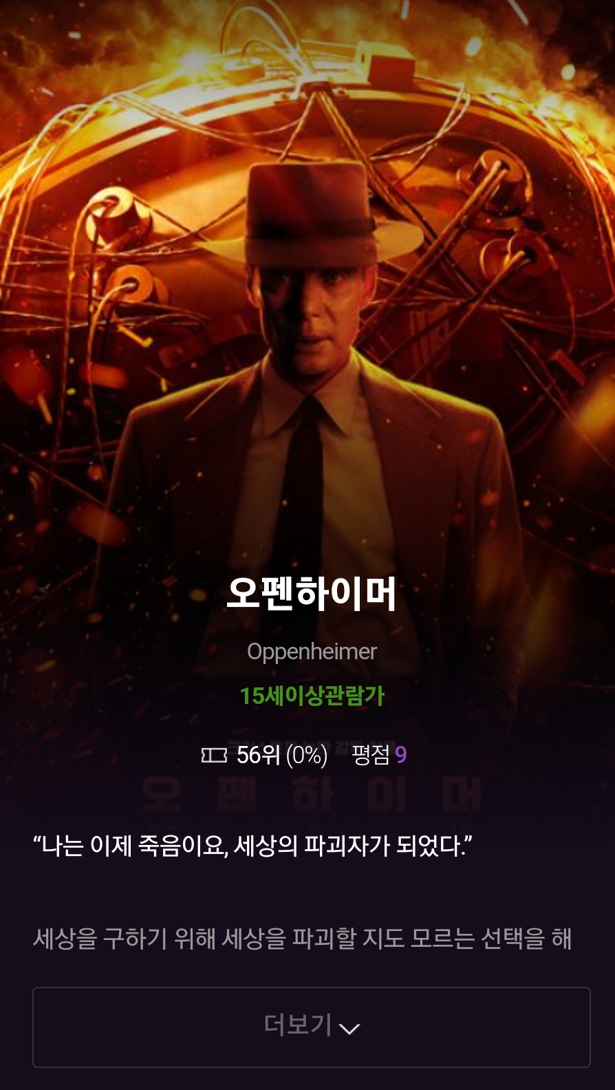 오펜하이머는 보고 영화 퀄리티에 비해 내가 너무 무식해 아쉬웠다... 공부하고 다시 볼게요 ㅠㅠ