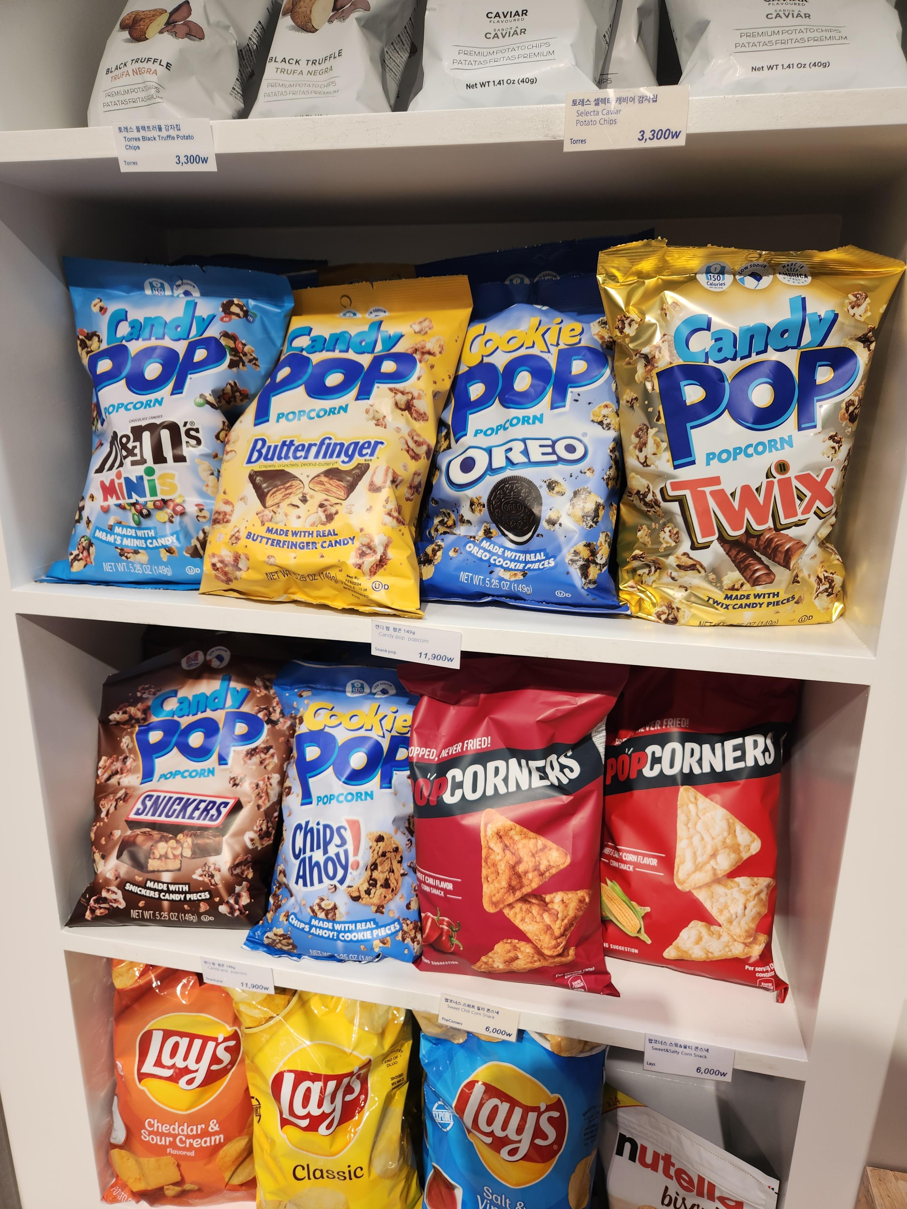 그리고 싱에서 자주 먹던 스낵 팝 캔디 팝콘 Snack POP도 봤다. 싱에서 7천 원 주고 먹으면서도 비싸다고 생각했는데 한국에선 1만 2천 원이네...^^