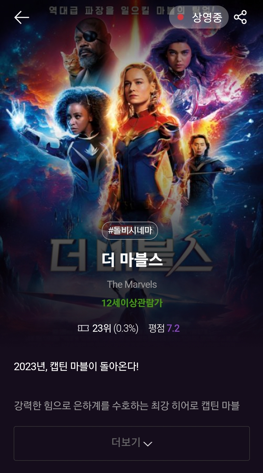 더 마블스는 기대 안 했는데 역시나.. 내용도 유치한데 액션 연기 왜케 못해요 ㅠㅠ 아빠는 CG가 많아서 재밌다고 하셨다.