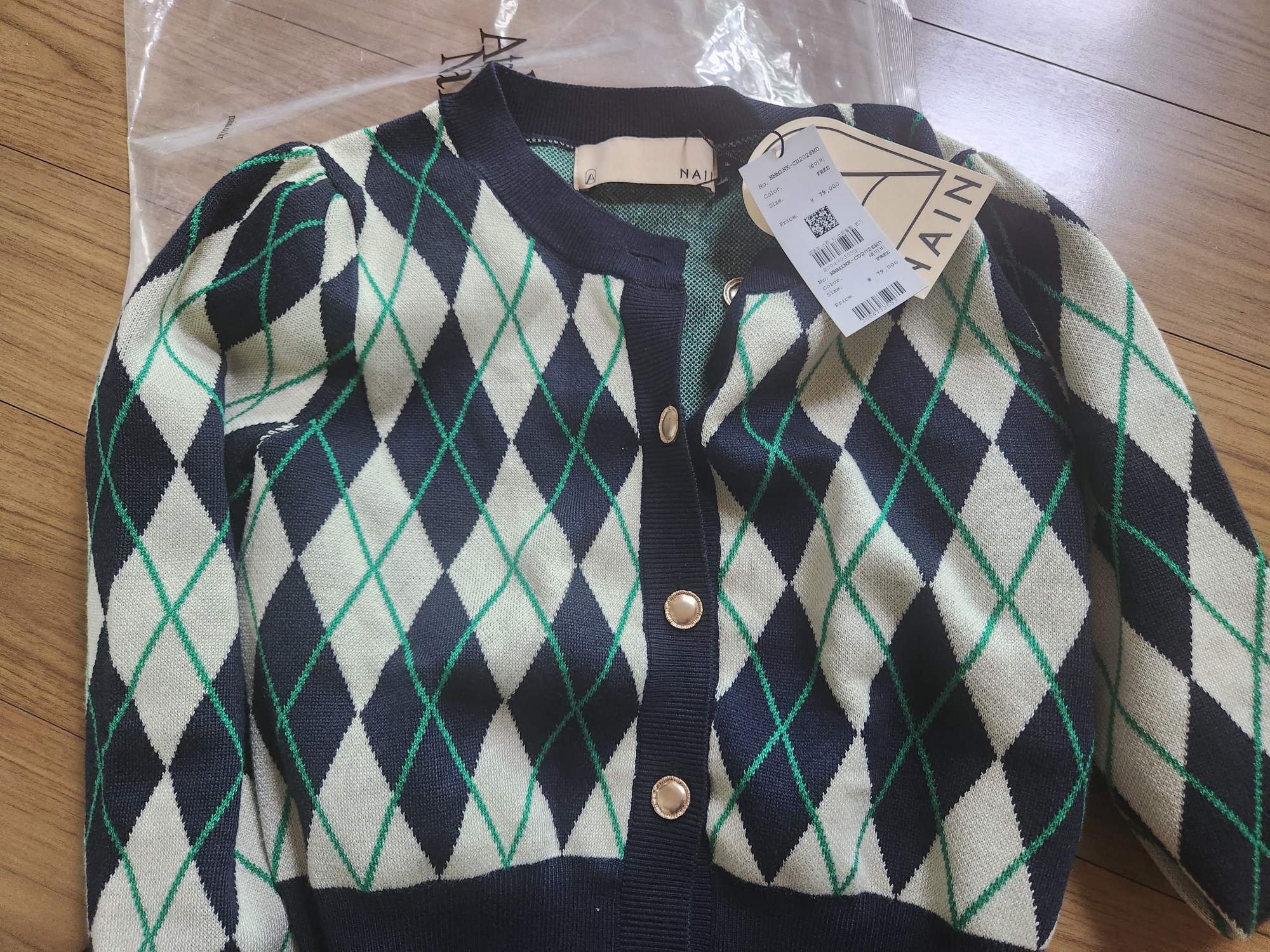 호텔에서 열어보니 나인 가디건 맨 위 단추가 없는 거다...;;