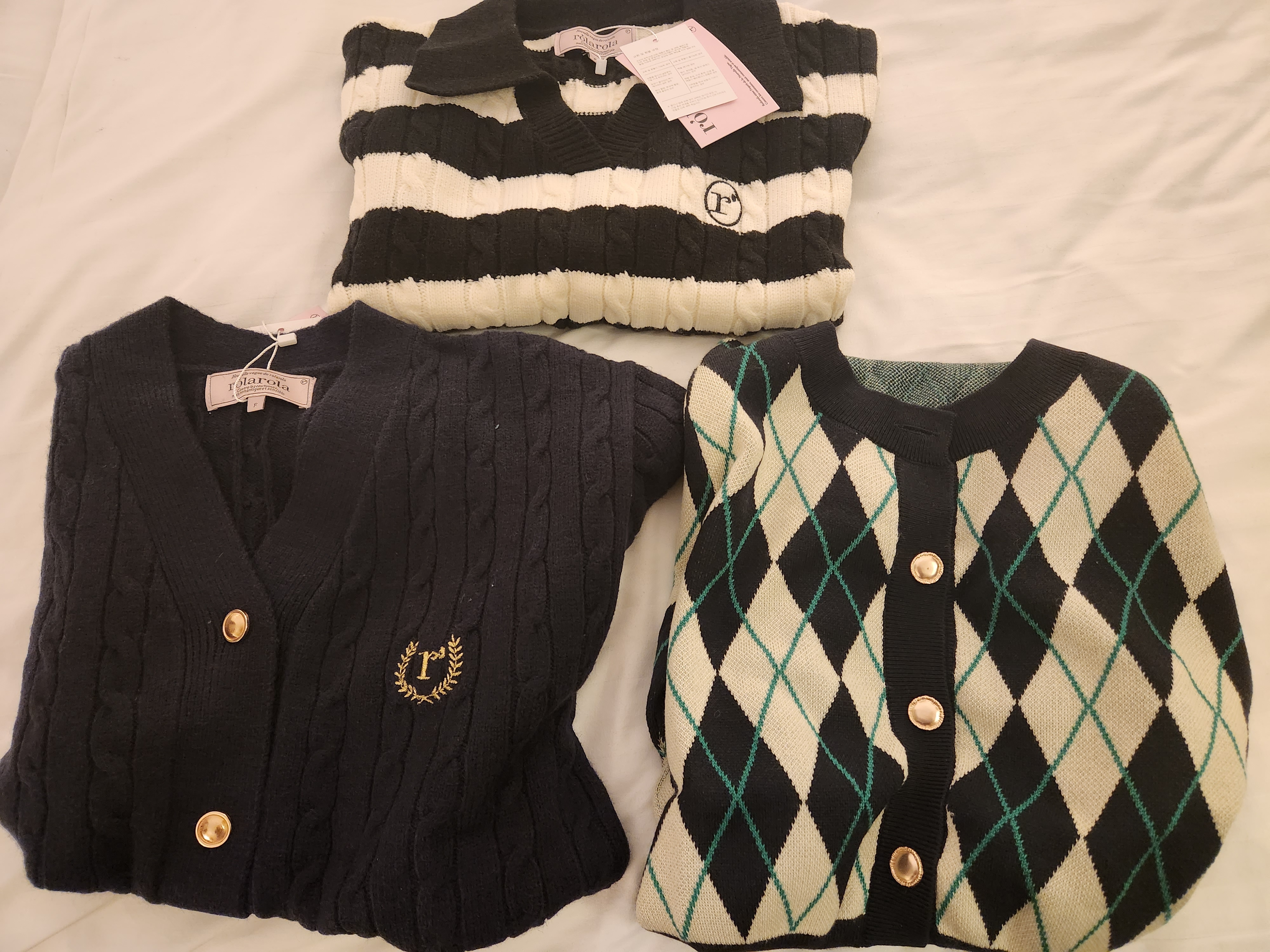로라로라와 나인에서 가디건과 니트를 구매했는데